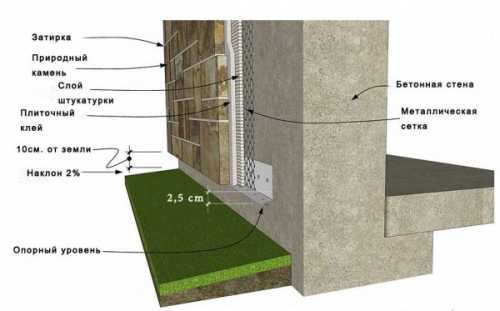- Облицовка вертикальных поверхностей (стен, заграждений и т. д.) производится камнями толщиной до 2 см;
