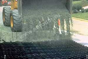 Георешетка также служит для противоэрозийной защиты естественных склонов и откосов насыпных сооружений, обеспечивая надежное закрепление грунта до образования устойчивого дернового покрова. Георешетка может служить армирующим элементом при укреплении слабых оснований, а также в конструкциях дорожных одежд. Применение объемной георешетки в этом случае позволяет оптимизировать конструкцию в целом, уменьшив ее деформацию и снизив толщину несущего щебеночного слоя.