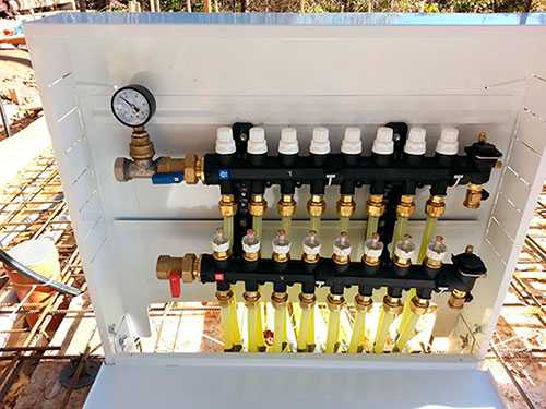 - Тепло передается по трубам теплого пола раздельно по помещениям, что обеспечивает раздельную регулировку климатических зон.