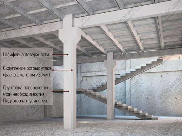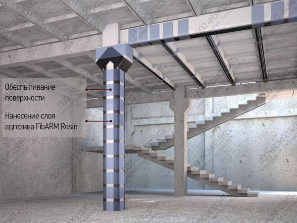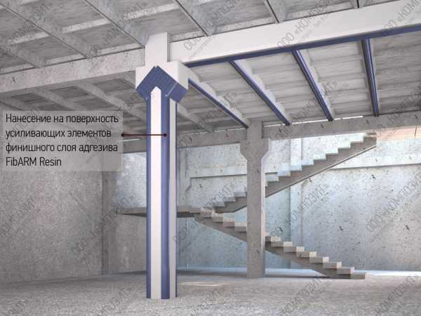 - Укрепление балок, ригелей, стоек, колонн, опор и свай композитными материалами, такими как углепластик, кевлар, карбоновое волокно и прочими подобными материалами;