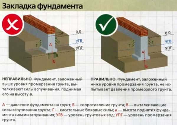 При возникновении вопросов по глубине заложения фундамента (она должна быть хотя бы немного больше глубины промерзания грунта в вашем районе) рекомендуется обратиться в местную архитектуру – там специалисты посмотрят свои карты и сообщат вам необходимые параметры.