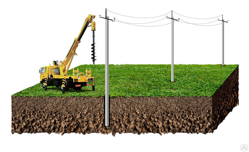 Выполнение земляных работ сводится к бурению ям, в которые будет осуществляться установка опор ЛЭП. Бурение производится механизированными способами (с применением бурильной спецтехники), а также вручную. Размеры пробуриваемых в земле отверстий зависят от следующих факторов: от веса и высоты опор, от прочности и устойчивости грунта, от интенсивности ветровой нагрузки и т. д.