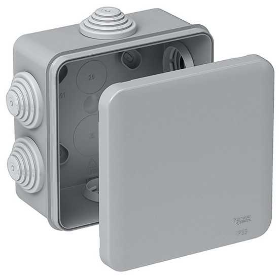 Для предотвращения попадания внутрь посторонних предметов, наружные коробки оснащаются уплотнительными хомутами для проводов. - Для уличного монтажа (герметичные). Монтаж распределительной коробки на открытом воздухе предполагает прямое воздействие воды, обмерзание, туман. Поскольку вода является проводником, внутри корпуса должно быть сухо. Поэтому герметичные коробки имеют резиновый уплотнитель по контуру прилегания крышки, и обжимные (цанговые) хомуты для заведения проводов.