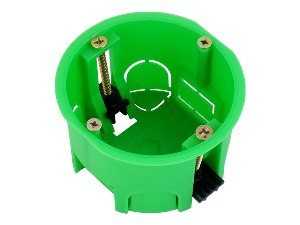 - Обычная коробка для пустотелых стен или гипсокартона представляет собой специальный монтажный элемент цилиндрической формы, который закрепляется внутри стены, чтобы впоследствии в нее можно было бы разместить элементы электрической сети.