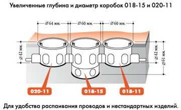 Такие устройства могут быть и с совмещенными распаечными коробками для гипсокартона с нужными монтажными элементами для розеток и прочих приборов. При выборе обязательно смотрите на то, что устройства должны свободно располагаться в спаренных секциях. То есть друг другу они мешать не должны.