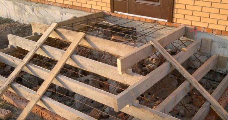 - С целью укрепления конструкции используются стойки из бруса. Они крепятся посредством поперечных и продольных связей. Их расположение регулируется с помощью уровня или отвеса. Чтобы достичь вертикального положения подпорок арматуры, следует применить проволоку или сварочный аппарат.