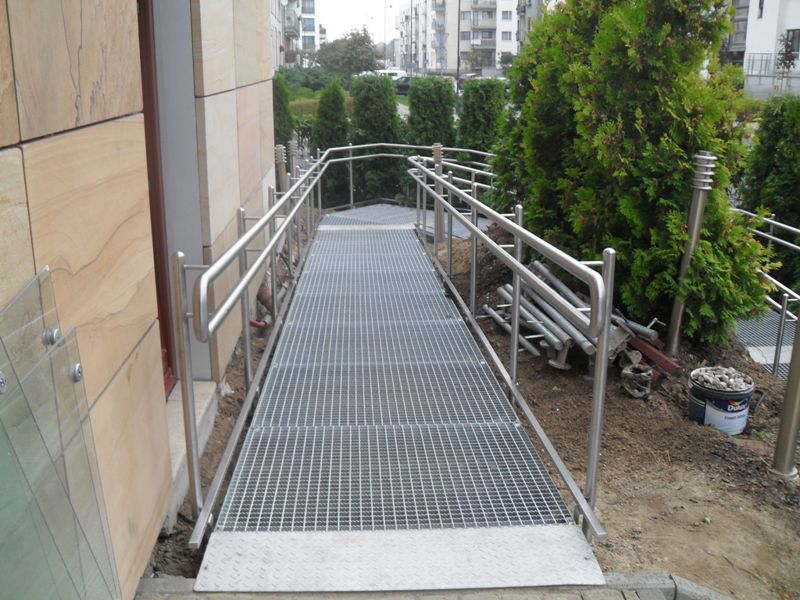 Существует несколько видов конструкций, из которых металлический пандус – самый практичный и надежный. Мы предлагаем множество вариантов пандусов. Это могут быть как цельнометаллические изделия, со специальным нескользящим покрытием, так и бетонные пандусы, с перилами или ограждением из нержавеющей стали.