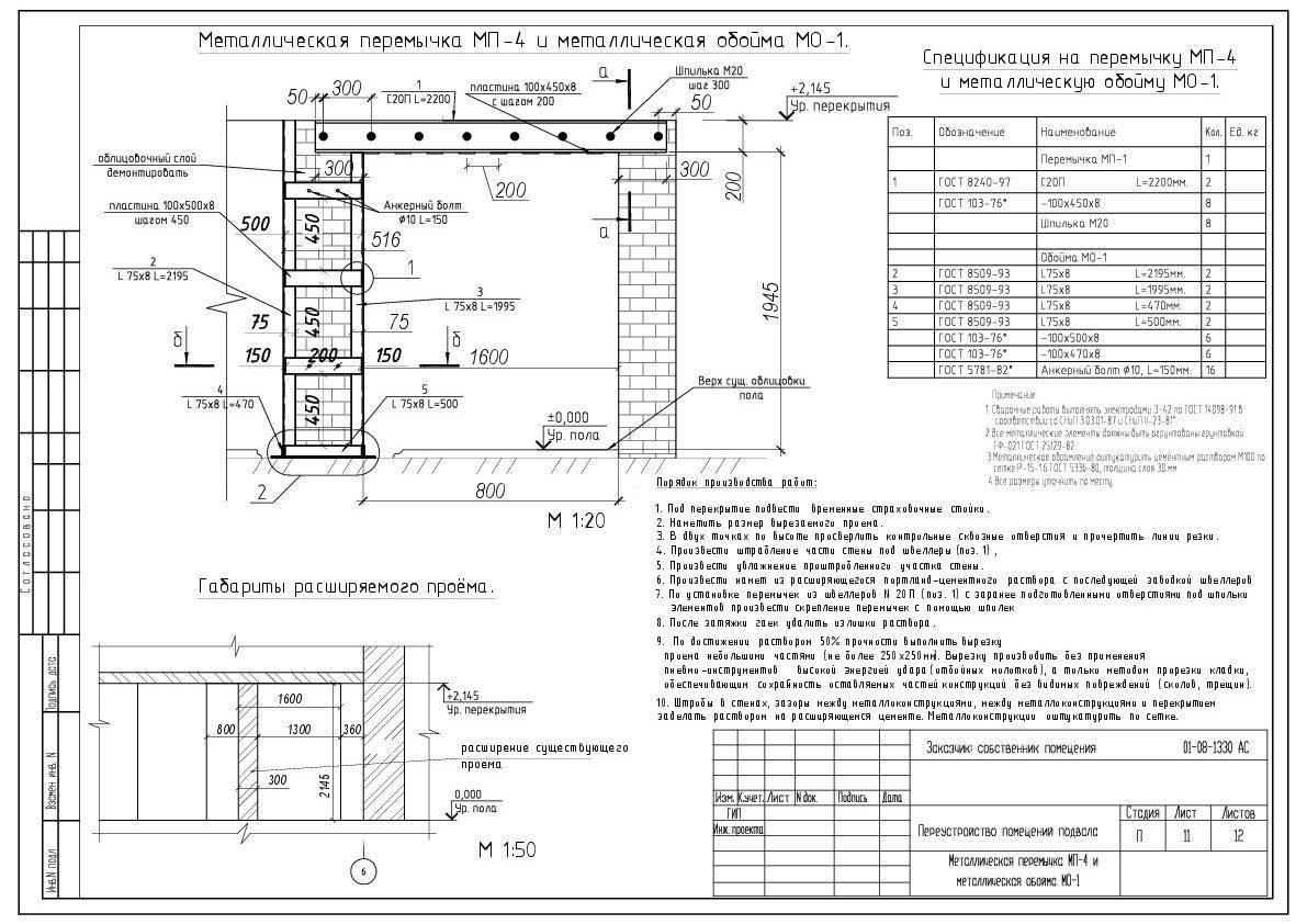 Устройство и усиление проемов в несущих стенах