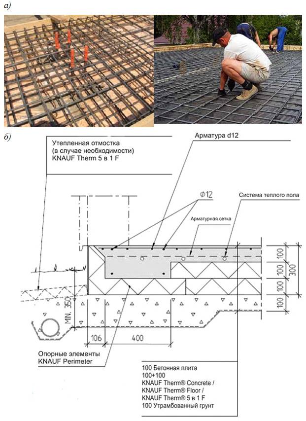 Глубина заложения такого основания выше линии промерзания почвы. При этом морозное пучение берут под контроль и компенсируют наружным утеплением плиты.