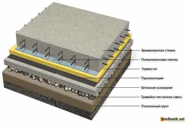 - Сверху утеплителя обязательно следует делать бетонную стяжку. В качестве альтернативы может применяться укладка тротуарной плитки.