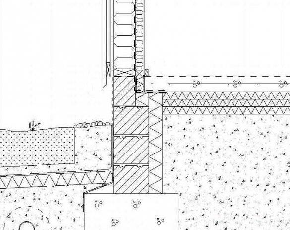 Дренажу при устройстве мелкозаглубленного фундамента следует уделить особое внимание, так как в противном случае основание может быть легко смыто и несущая конструкция будет разрушена.