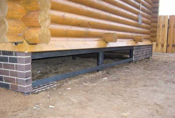 Один из методов это строительство цоколя из камня, кирпича или из другого подобного материала. Для такого строительства необходим отдельный небольшой фундамент, поэтому вдоль стен и свайных опор прокапывают неглубокую траншею, в которую укладывают арматурный каркас.