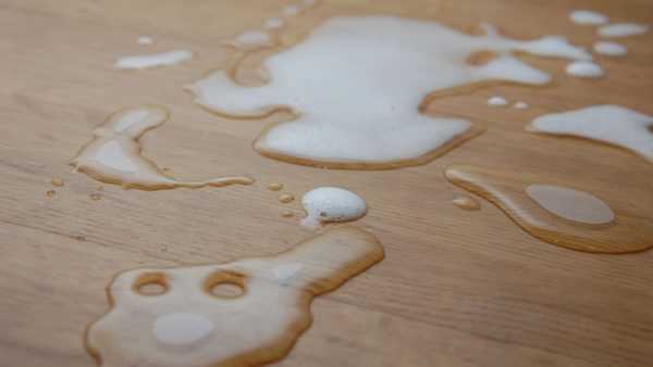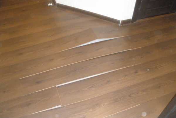 - набухание — причиной становится пролитая жидкость, неправильная уборка, повышенная влажность в помещении;