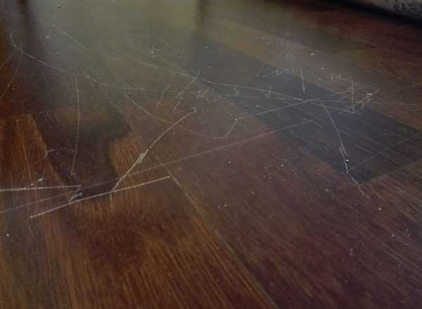 Царапины появляются как результат неправильной эксплуатации напольного покрытия — от детских игрушек (машинок), передвигания мебели, под ножки которой не подложены подкладки. Оставлять такие дефекты на полу без внимания нельзя. Песчинки постепенно увеличат царапину, а пыль и возможная грязь застрянут, в результате придётся менять всю ламель, а это уже небольшой ремонт.