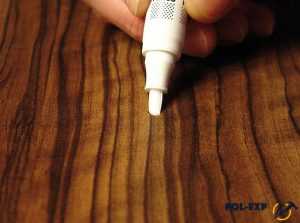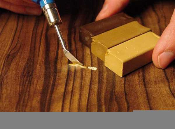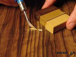 Для маскировки мелких царапин используют специальные восковые карандаши. Излишки восковой пасты удаляют сухой ветошью.