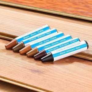 Подобрать карандаш нужного цвета несложно. В продаже можно найти оттенок под любой ламинат. С мастиками и пастами сложнее, их выпускают в ограниченной палитре цветов. Чтобы получить нужный оттенок, придётся поэкспериментировать: взять несколько цветов и смешать в разных пропорциях, пока не получите нужный.