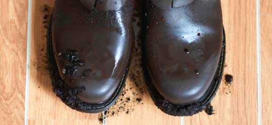 - Следы обуви – удаляются при помощи канцелярского ластика или фланелевой ткани. Предварительно след можно размягчить парой капель подсолнечного масла.