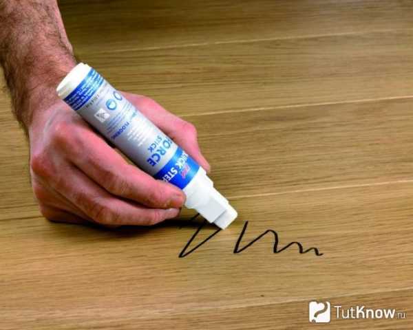 Карандаш больше подойдет для устранения потертостей и неглубоких царапин. если же повреждения сильные, лучше использовать пасту или мастику. обратите внимание: ходить по обработанной ламели можно только спустя пару часов, до этого момента лучше прикрыть ее салфеткой или сухой тряпкой.