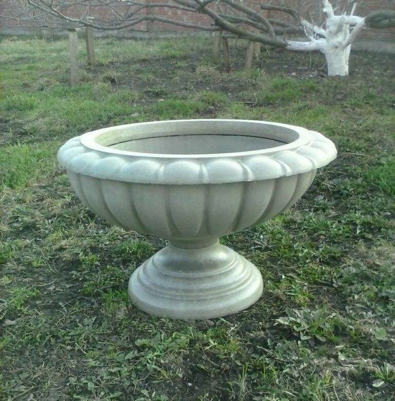 Какие бывают цветочные вазоныГоршки и посадочные емкости для цветов могут быть выполнены из подручных средств, из пластика, автошин, натурального камня, бетона. Самыми практичными являются садовые вазоны из бетона.