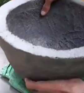 По возможности выравниваем внутреннюю поверхность будущей вазы из цемента и ее верхнюю часть с помощью мастерка и тряпки.