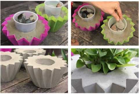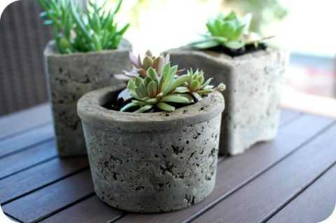 Но при этом, пластичность раствора позволяет создавать любые формы, в том числе и достаточно малых размеров. Поэтому, неважно, где вы решили разместить бетонные горшки: в квартире, на веранде или на приусадебном участке, технологии их создания всегда одинаковы.