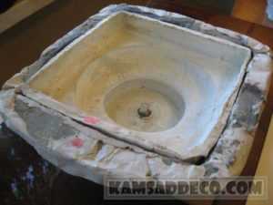 - Для улучшения процесса изготовления хотелось бы учесть следующее: для более равномерной пропитки ткани (четкости ее рельефа) желательно цементный раствор сделать еще более жидким или предварительно смочить мешок водой, чтобы он не впитывал влагу из раствора.