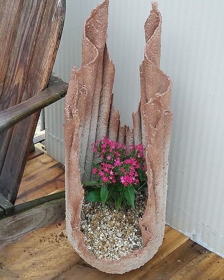- Цемент или бетон — очень удобные материалы, они могут принимать любую форму, что является большим преимуществом. Вы можете делать маленькие горшочки для цветов или большие напольные вазы.