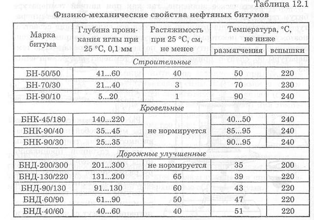 Характеристики основных марок битума, используемых при производстве кровельных материалов, приведены в Таблице 1.