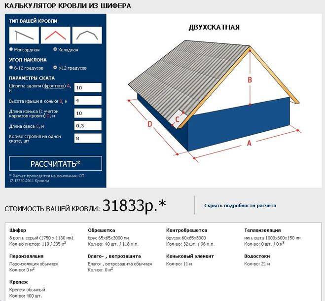 Крыша двускатная, угол наклона – 28 градусов. Площадь крыши дома составит 150 м2. Примерный вес крыши, которая включает в себя стропила, мауэрлат, бруски, укосины, горбыля, фронтоны, контробрешетку, обрешетку, мембраны, профнастил и элементы крепления, составит около 55 кг/м2.