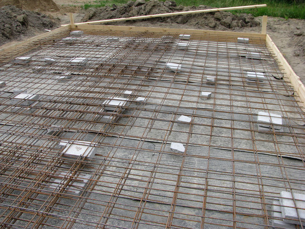 Для этого на момент укладки арматуры просвет должен быть не менее 4 см. Один см – это толщина слоя бетона над арматурой, 1,5 см – поднятие площадки осенью и весной. Фактический зазор – 1,5 см, чего достаточно даже для зимы.