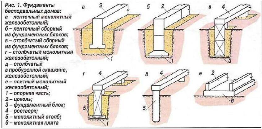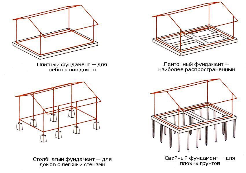 В малоэтажном строительстве традиционно используются несколько типов фундаментов: