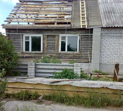 - Дом до самой поверхности земли освобождают от бывшего фундамента. Если вы не готовы сильно тратиться на ремонт основания, то можно разобрать конструкцию частично — удалить лишь разрушенные участки.