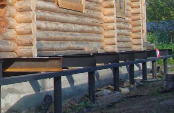 Новый фундамент может быть любым – такая же лента, сваи или столбы. При установке точеных опор соблюдают все технические требования. Все они выводятся в один уровень, затем устанавливается нижняя обвязка из металлического швеллера или толстого бруса. Обязательно прокладка гидроизоляционного материала.
