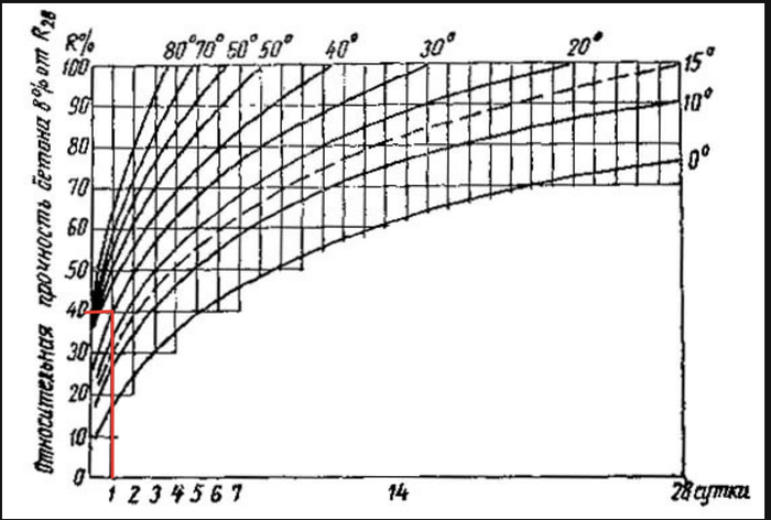 Скорость набора прочности бетона в зависимости от температуры