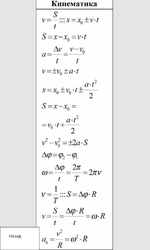 - , если ускорение равно нулю, то конечная скорость равна начальной скорости, как и ожидалось (т.е., скорость постоянна)