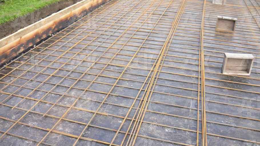 Арматурная сетка — это просто серия арматурных стержней или катанки, уложенных на определенных расстояниях, с приваренными к ним под прямым углом стержнями, образующими решетку. Арматура сетки выбирается исходя из толщины плиты и других параметров в соответствии с требованиями норм.Сетчатые панели помещаются на распорки, которые удерживают их в нужном месте внутри плиты, а соседние панели размещаются внахлест, чтобы обеспечить постоянство прочности на разрыв внутри плиты. «Сетчатые панели с подвижным концом» — это специальные панели, в которых последняя проволока отсутствует, чтобы обеспечить необходимое 350-миллиметровое перекрытие с соседними панелями без чрезмерного наращивания сетки и возникающих проблем с обеспечением необходимого бетонного покрытия поверх сетки.
