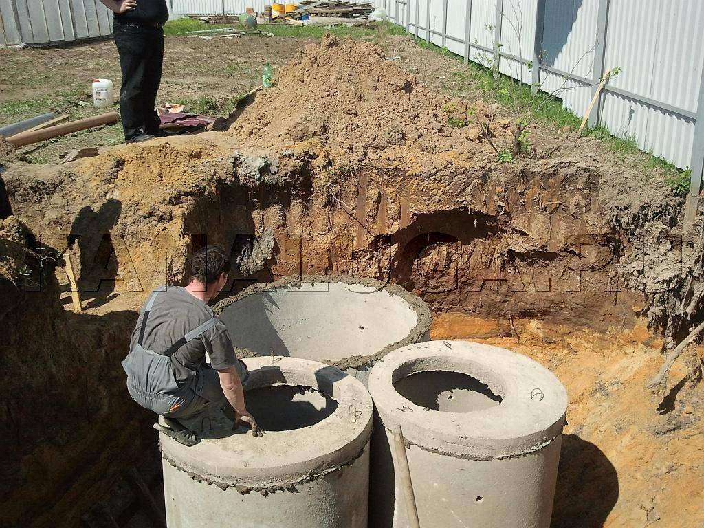 - Установка колец, обработка швоа и дна, герметизация.