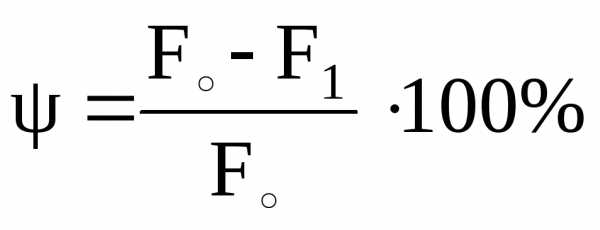 ,где l0, А0 — длина рабочей части образца и площадь поперечного сечения до деформации; lк — длина рабочей части образца после разрыва; АК — конечная площадь поперечного сечения в шейке образца после разрыва.