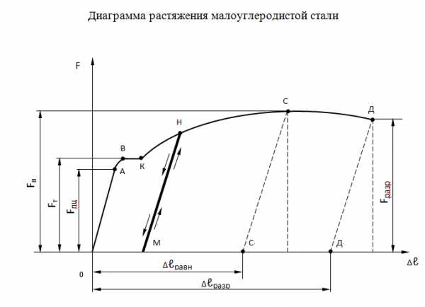 1. Диаграмма растяжения малоуглеродистой стали. Условный предел текучести