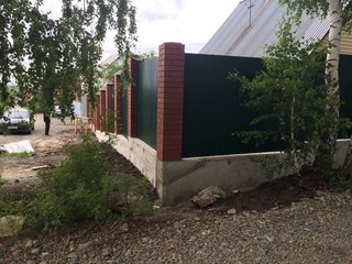 Предварительно устанавливают опоры, иногда возводят столбы из камня или кирпича. Сооружение получается капитальным. Профлисты для забора в подобной конструкции используются редко.