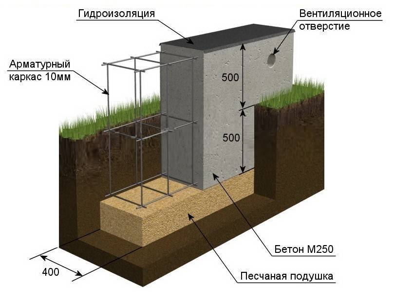 - Выполнить подбетонку – залить подушку тонким слоем бетона. Просушить.