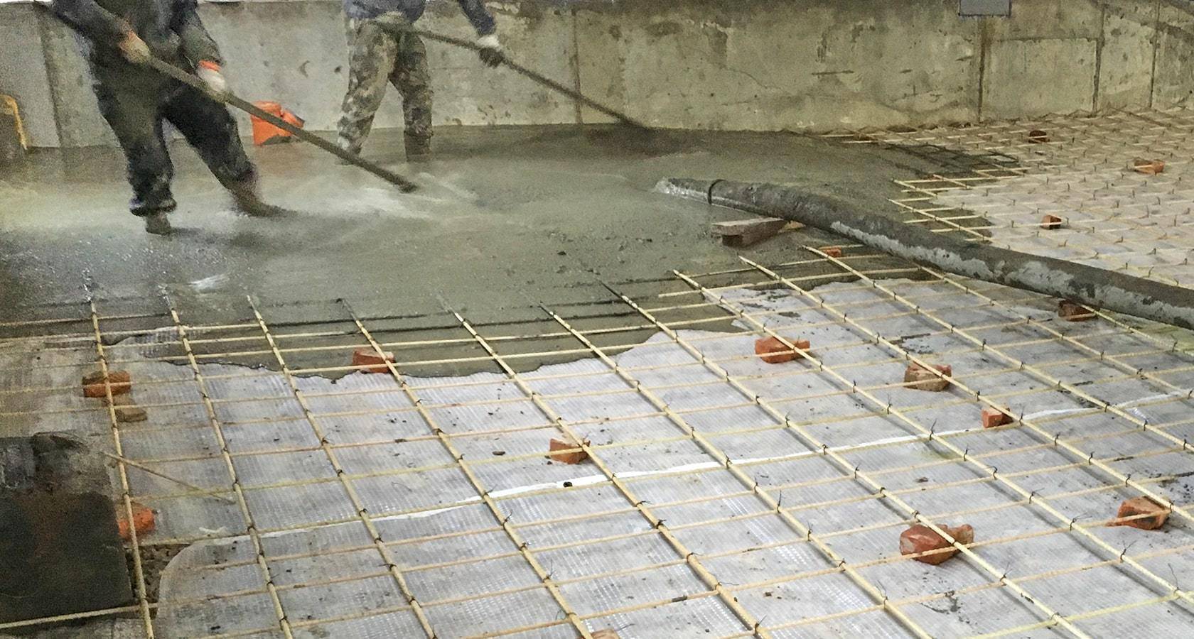 строительная площадка — заливка бетонного поластроительная площадка