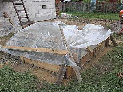 После того как бетон окончательно схватится, опалубка накрывается полиэтиленовой пленкой для защиты всей поверхности от высыхания. Далее в течение недели необходимо регулярно обильно поливать бетон водой из лейки.