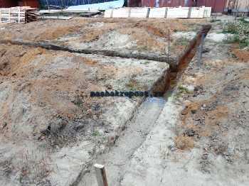 Если на месте строительства преобладают песчаные почвы, обладающие высокими впитывающими свойствами. Для снижения гигроскопичности грунта желательно изготовить более широкую канаву, предусмотрев возможность установки опалубки.