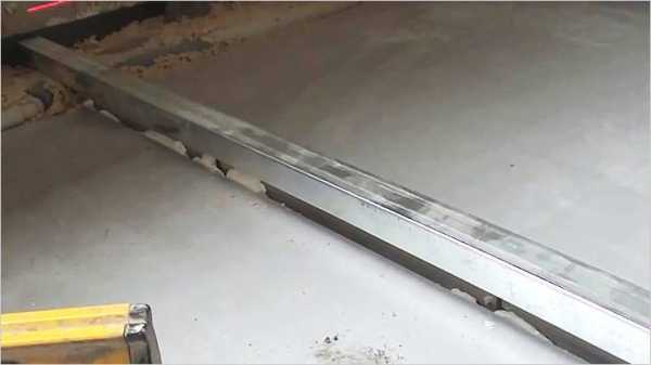 Пример линейного маяка из металлического профиляНа многих видео по устройству стяжки пола используются именно линейные маяки. Правила устройства для них такие же, как и для точечных ориентиров. Разница лишь в том, что все точки соединяются одним элементом, который должен располагаться в одной плоскости с уровнем стяжки.