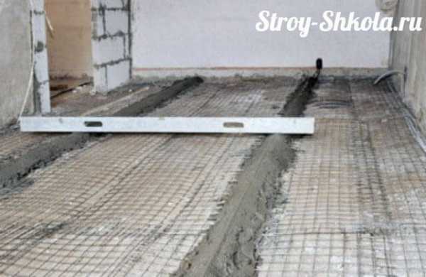 Толщина бетона должна быть не меньше 30 мм, иначе пол будет хрупким и ненадежным.