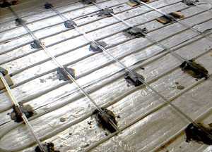Все стыки пластов необходимо проклеить скотчем или алюминиевой липкой лентой. Учтите, что эта прослойка увеличивает слой стяжки на 1-2 см.