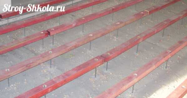 - Если маячками вам будут служить бруски из дерева, то следующее, что вы должны сделать, это уложить их на саморезы. Начинайте с дальнего от входа угла, двигайтесь плавно, постепенно. Заливать бруски нужно таким образом, чтобы впоследствии они не двигались. Сначала так крепятся первая пара маячков, впоследствии заливается пространство между ними. Маячки также послужат рельсами для правила, с помощью которого будет регулироваться ровность пола. Лишний раствор будет сдвигаться туда, где заливка еще не сделана.