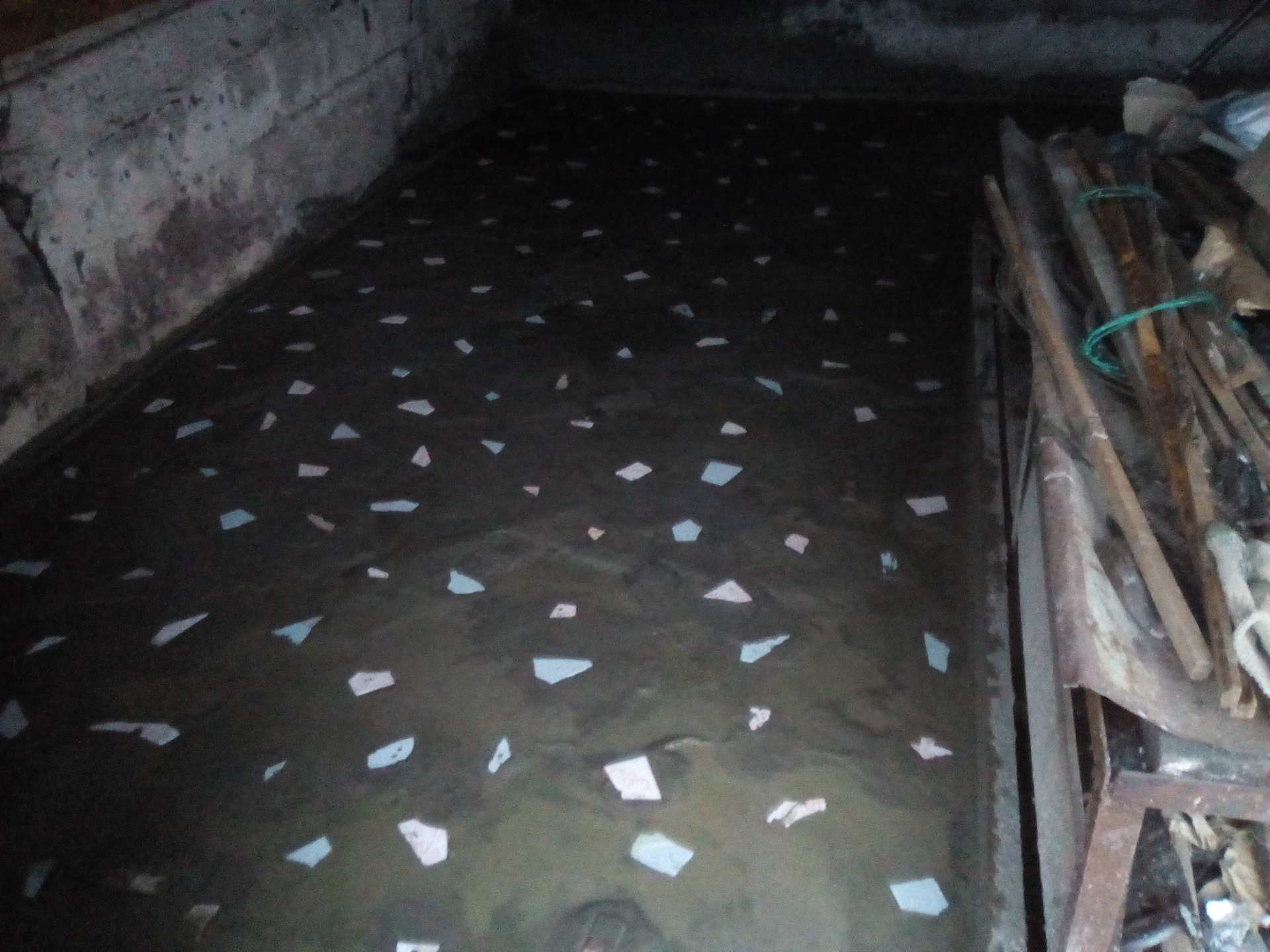 Залитый бетонный пол в наражеПосле чего бетон затирали с топпингом до глянца.