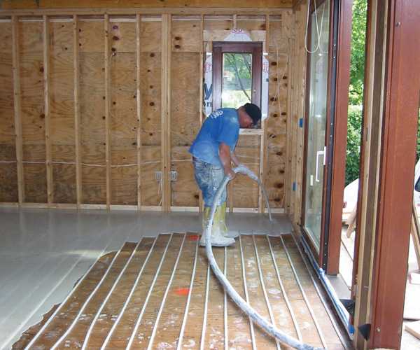 Процесс заливки бетоном — один из самых важных моментов для теплого пола. Его следует делать профессионально.